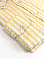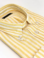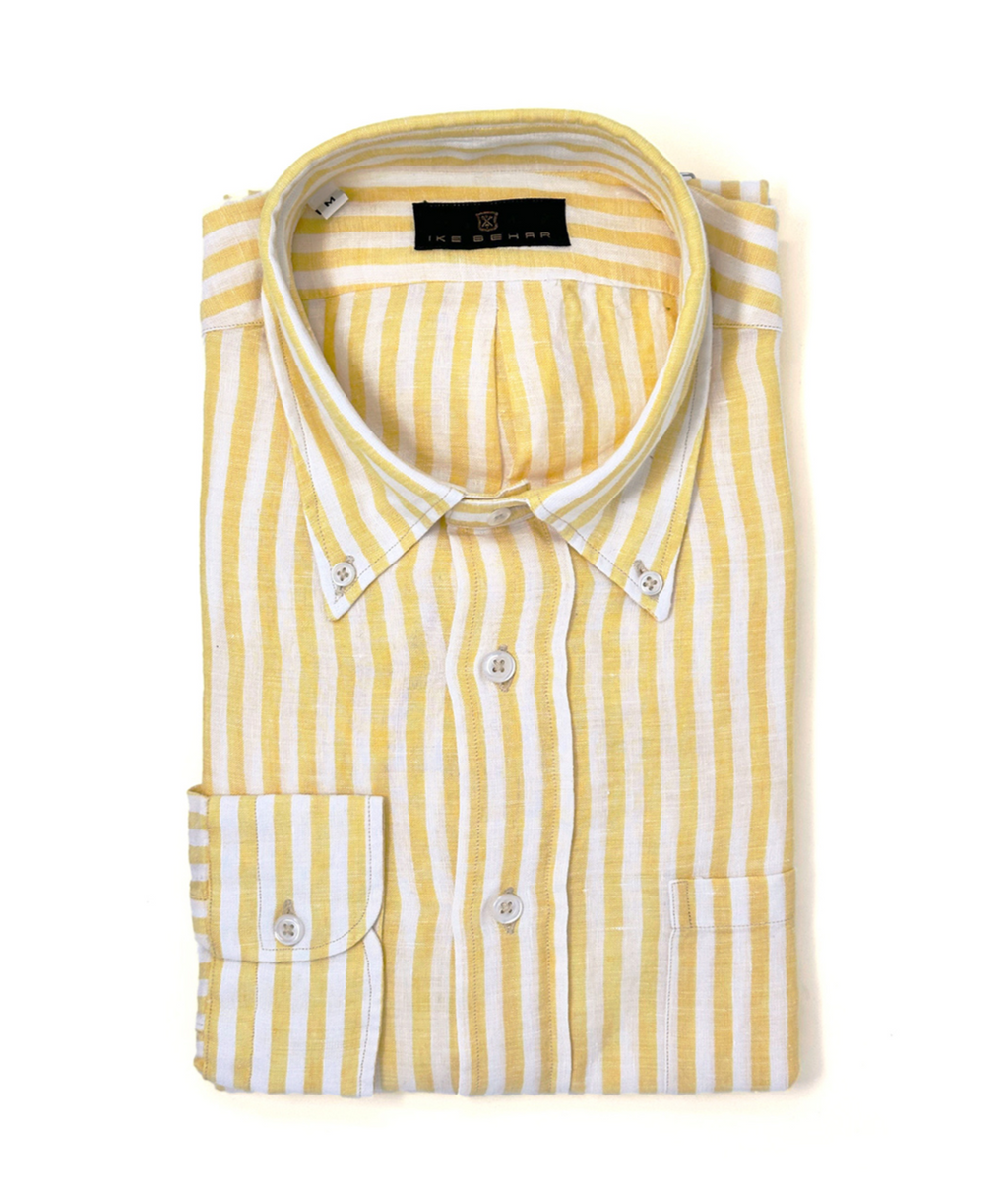 The Yellow and White Bar Stripe Linen Sport Shirt from Ike Behar is a perfect blend of classic style and modern luxury. Made in Italy from 100% premium linen, it offers exceptional breathability and comfort. The button-down collar adds a refined touch, enhancing its versatile design. A crisp yellow and white bar stripe pattern creates a timeless yet contemporary aesthetic. Expert tailoring ensures a perfect fit, making it ideal for both casual and semi-formal occasions. Crafted with meticulous attention to detail, this shirt embodies Ike Behar’s commitment to quality and sophistication.